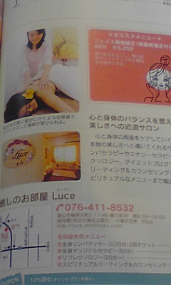 ![]() お仕事の関係で急きょ一泊で富山に来られたそうで、ちょうどお店もお客様が帰られる時だったので、グッドダイミング ![]() 彼女とはおよそ1年半ぶりです ![]() 去年はルーチェがオープンしたての時に雪の中きてくださって、今日も時間のない中来ていただいてホントにうれしかったです ![]() 一時間くらいしか時間がなかったので、30分ほどの施術をして、あわただしく帰っていかれました~ きっと次回も来年だねって言いながら ![]() またお会い出来るのを楽しみにしてますね!! ありがとうございます