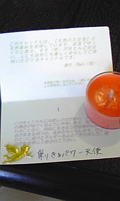 ヒーリングキャンドル☆とってもイイです♪ 普通のキャンドルは手についたりすると固まりますが、このキャンドルは大豆のオイルを使用している為サラサラしていて、固まらないのです ![]() しかも天然のオイルみたく肌につるつるとなじんでくるのですよ ![]() キャンドルはレイン(雨)の香りなのですが、色も何種類かあり、中にはメッセージも入っています!! そのキャンドルを選んだ人にピッタリのメッセージなのです ![]() 今日も午前中にお友達が、ルーチェに来てくれて、キャンドルをプレゼントしたのですが、それまでに話していた内容ピッタリで、すごくびっくりしていました!! とても楽しいキャンドルです!! ルーチェでも置かせていただこうと思っているので、どうぞお楽しみに ![]()